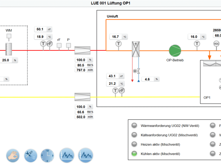 Die Integration und Regelung der sensiblen Operationsräume erwies sich als technisch äusserst anspruchsvoll, vor allem im Hinblick auf die Regulierung der Luftbefeuchtung. Gefordert waren wir auch bei der Sicherstellung der reibungslosen Kommunikation zwischen der Steuerung und der grossen Anzahl an Feldgeräten und Operationsanlagen.